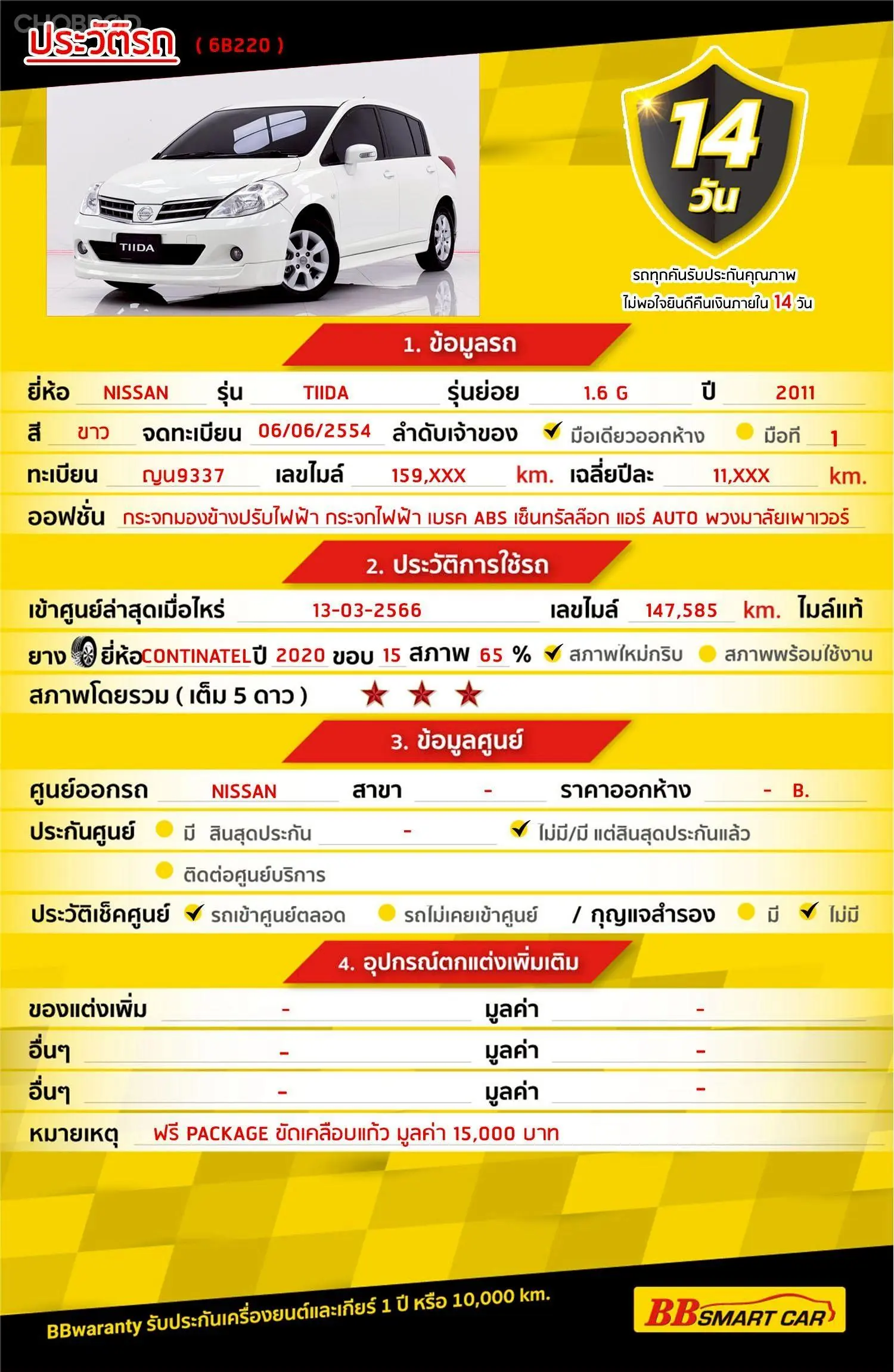 NISSAN TIIDA 1.6 G AT 2011 ออกรถ 0 บาท จัดได้ 149,000 บ. Line:@bbcar06 🔥จอง 199 บาท ส่งบัตรประชาชน รู้ผลพิจารณาภายใน 30 นาที ไม่ผ่านคืนเงินจองทุกกรณี 🔥ซื้อรถกับ BB พร้อมให้คำปรึกษา แก้ทุกปัญหา ให้ทุกเรื่อง บริการ call center 24 ชม. 🔥BB Care Plus รับประกันหลังการขาย สูงสุด 2 ปี หรือ 20,000 km.. 🔥มีรถให้เลือกมากกว่า 1,600 คัน สาขา 6 ศูนย์รวมรถยนต์ไอคาร์สยาม กาญจนาภิเษก รหัสรถ 6B220 ราคา 129,000 บาท ผ่อนเพียง 2,701 บาท Brand. : NISSAN Year. : 2011 Model. : TIIDA Grade. : 1.6 G Engine. : 1,600 CC Type. : เบนซิน Gearbox : AT Color. : ขาว Mileage. : 159,xxx KM. (ซื้อสด ราคานี้ยังไม่รวมค่าดำเนินการ 10,000 บ.) 🚩 Price. 129,000 บาท ยอดจัด : 139,000 บาท เงินดาวน์ : 0 บาท ประกันภัย : ฟรีประกันภัย 1 ปี ค่าดำเนินการ : 10,000 บาท รวมออกรถ : 0 บาท ผ่อน 36 = 4,782 บาท ผ่อน 48 = 3,749 บาท ผ่อน 60 = 3,223 บาท ผ่อน 72 = 2,871 บาท ผ่อน 84 = 2,701 บาท เงื่อนไขเป็นไปตามที่ไฟแนนซ์กำหนด โปรโมชั่นพิเศษ สำหรับลูกค้าเครดิตดี 🚩เลือกรับเรทดอกเบี้ยพิเศษ 📍36 งวด = 1.29 % 📍48 งวด = 1.99 % 📍60 งวด = 2.39 % 📍72 งวด = 3.59 % 🔥 เงื่อนไข โปรโมชั่น ดอกเบี้ยเริ่มต้น 1.29% ตลอดอายุสัญญา - ยอดจัดไฟแนนซ์ 300,000-600,0000 บาท - ผ่อนสูงสุด 72 เดือน - เป็นลูกค้าประวัติดี พนักงานประจำเงินเดือน 20,000 ขึ้นไป - ค่าดำเนินการแคมเปญ 20,000 บาท (รวมในยอดจัดได้) 🎗Car Hightlight รถสวยๆ วันนี้ขอแนะนำ NISSAN TIIDA 1.6 G AT 2011 ออฟชั่น 12.2.1 :1. ห้องโดยสารกว้างขวางกว่ารถในคลาสเดียวกัน – เบาะนั่งกว้าง นั่งสบาย โดยเฉพาะเบาะหลัง พื้นที่วางขากว้างเกินมาตรฐานรถคอมแพ็ก 2. สมรรถนะและความประหยัด – เครื่องยนต์ 1.6 ลิตร HR16DE ให้กำลังเพียงพอ ขับง่าย ไม่กินน้ำมันเกินไป 3. ช่วงล่างนุ่มนวล – เหมาะกับการใช้งานในเมืองและเดินทางต่างจังหวัดแบบครอบครัว 🎗ภายใน กระจกมองข้างปรับไฟฟ้า กระจกไฟฟ้า เบรค ABS เซ็นทรัลล๊อก วิทยุ - CD Airbag แอร์ AUTO เบาะหนัง พวงมาลัยเพาเวอร์ 🎗ภายนอก คิ้วกันสาด ไฟเลี้ยวกระจกมองข้าง ล้อแม็ก ไฟตัดหมอก 🎗ความคุ้มค่า สำหรับคันนี้หากเปรียบเทียบราคากับคุณภาพ คันนี้ถือว่าคุ้มค่ามากค่ะ ผ่อนสบายๆก็มีรถขับได้ รถดีมีคุณภาพแบบนี้รีบตัดสินใจซื้อได้เลราคานี้มาไวไปไวนะคะ ⭐️การรับประกันหลังการขาย BB Care Plus สูงสุด 2 ปี หรือ 20,000 km. ด้วยช่างที่ผ่านการอบรมจากศูนย์ชั้นนำของประเทศ 🎉🎉Special offer เฉพาะ บีบีสมาร์ทคาร์ ที่นี่ที่เดียว ⭐️ ดอกเบี้ยเริ่มต้น 1.29% มีไฟแนนซ์รองรับหลายที่ค่ะ ⭐️ ฟรี!! แพคเก็จ ขัดเคลือบแก้ว มูลค่า 15,000 บาท ทุกคัน ⭐️ อนุมัติไว 30 นาที นำเอกสารมาให้ครบรับรถกลับบ้านทันทีค่ะ ⭐️ BB Care Plus รับประกันหลังการขาย สูงสุด 2 ปี หรือ 20,000 km. ⭐️ มี 6 สาขา ในกรุงเทพและปริมณฑลใกล้บ้านท่าน ⭐️ รถทุกคันผ่านตรวจสอบ Inspection เรียบแล้วค่ะ ผ่าน 5 ดาวทุกคันค่ะ ⭐️ เซลล์ทุกท่านเป็นมืออาชีพพร้อมให้บริการทุกท่านแน่นอนค่ะ