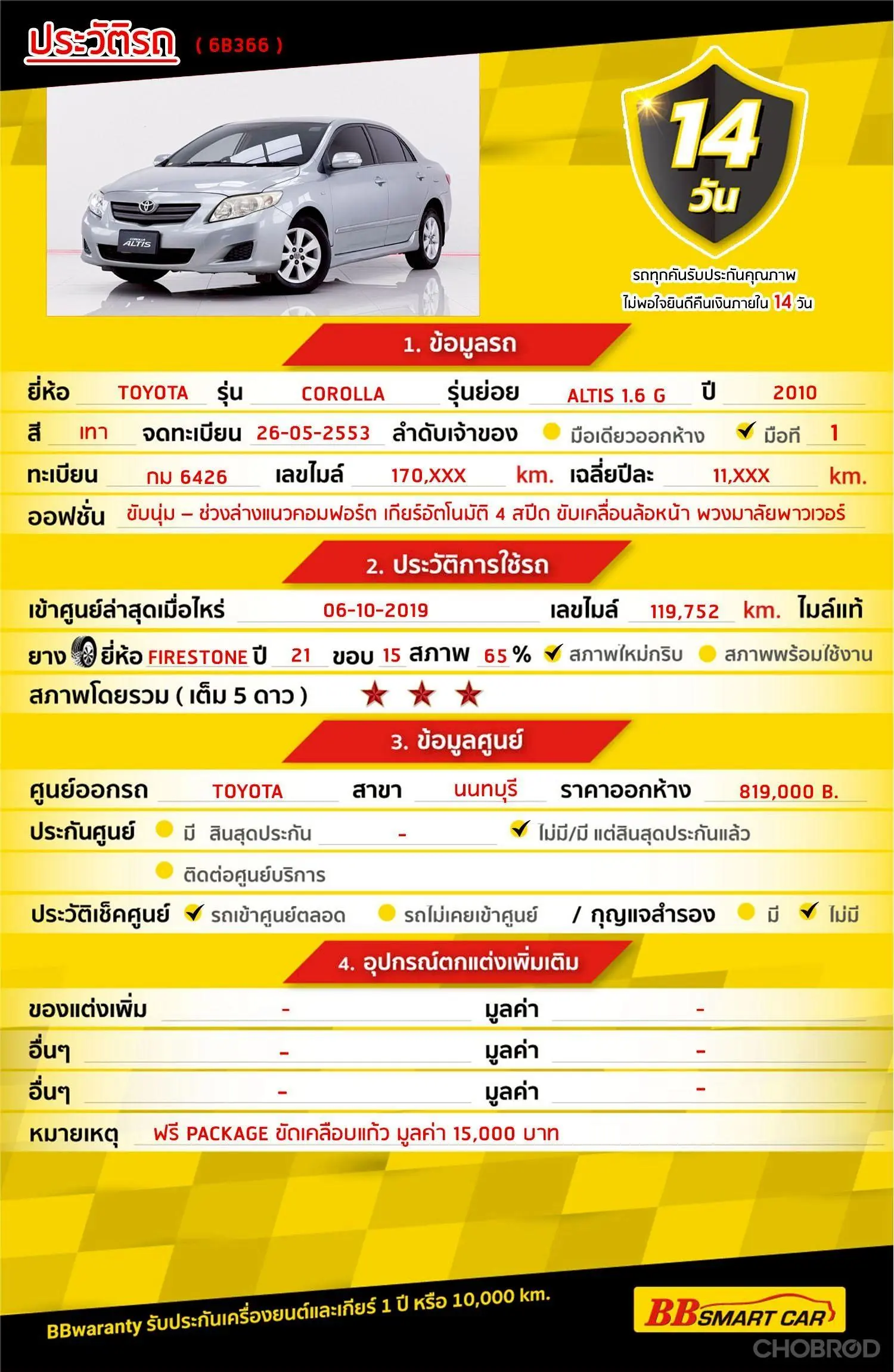 6B366 TOYOTA ALTIS 1.6 G AT 2010
