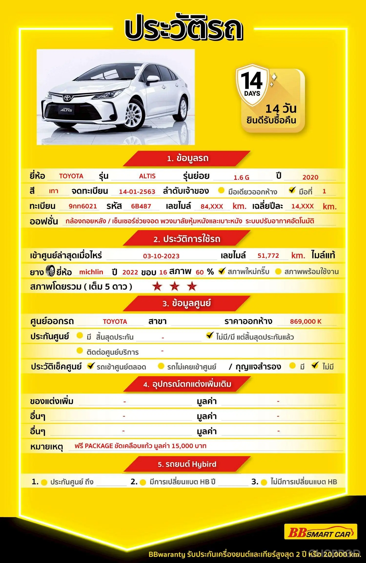 TOYOTA ALTIS 1.6 G AT 2020 ออกรถ 0 บาท รหัส 6B487 Line: ID @bbcar06 🔥มีรถให้เลือกมากกว่า 1,800 คัน 🔥รถทุกคันผ่านตรวจสอบ Inspection เรียบแล้วค่ะ ผ่าน 5 ดาวทุกคันค่ะ 🔥ซื้อรถกับ BB พร้อมให้คำปรึกษา แก้ทุกปัญหา ให้ทุกเรื่อง บริการ call center 24 ชม. 🔥BB Care Plus รับประกันหลังการขาย สูงสุด 2 ปี หรือ 20,000 km. 🔥ฟรี!! แพคเก็จ ขัดเคลือบแก้ว มูลค่า 15,000 บาท ทุกคัน 🔥มี 6 สาขา ในกรุงเทพและปริมณฑลใกล้บ้านท่าน สาขา 6 ศูนย์รวมรถยนต์ไอคาร์สยาม กาญจนาภิเษก รหัสรถ 6B487 ราคา 449,000 บาท ผ่อนเพียง 7,685 บาท Brand. : TOYOTA Year. : 2020 Model. : ALTIS Grade. : 1.6 G Engine. : 1,600 CC Type. : เบนซิน Gearbox : AT Color. : เทา Mileage. : 84,XXX KM. (ซื้อสด ราคานี้ยังไม่รวมค่าดำเนินการ 10,000 บ.) 🚩 Price. 449,000 บาท ยอดจัด : 459,000 บาท เงินดาวน์ : 0 บาท ประกันภัย : ฟรีประกันภัย 1 ปี ค่าดำเนินการ : 10,000 บาท รวมออกรถ : 0 บาท ผ่อน 36 งวด = 14,784 บาท ผ่อน 48 งวด = 11,374 บาท ผ่อน 60 งวด = 9,450 บาท ผ่อน 72 งวด = 8,454 บาท ผ่อน 84 งวด = 7,685 บาท เงื่อนไขเป็นไปตามที่ไฟแนนซ์กำหนด โปรโมชั่นพิเศษ สำหรับลูกค้าเครดิตดีลือกรับเรทดอกเบี้ยพิเศษ 📍36 งวด = 1.29 % 📍48 งวด = 1.99 % 📍60 งวด = 2.39 % 📍72 งวด = 3.59 % 🔥 เงื่อนไข โปรโมชั่น ดอกเบี้ยเริ่มต้น 1.29% ตลอดอายุสัญญา - ยอดจัดไฟแนนซ์ 300,000-600,000 บาท - ผ่อนสูงสุด 72 เดือน - เป็นลูกค้าประวัติดี พนักงานประจำเงินเดือน 20,000 ขึ้นไป - ค่าดำเนินการแคมเปญ 20,000 บาท (รวมในยอดจัดได้) 🎗Car Hightlight รถสวยๆ วันนี้ขอแนะนำ TOYOTA ALTIS 1.6 G AT 2020 จุดเด่นออฟชั่น 1) สมรรถนะดีและประหยัดน้ำมัน •ขับเคลื่อนด้วย เครื่องยนต์เบนซิน 1.6 ลิตร 125 แรงม้า ให้แรงบิดประมาณ 156 Nm พร้อมเกียร์อัตโนมัติ CVT ที่ขับง่ายและนิ่งทั้งในเมืองและทางไกล. •เครื่องยนต์และเกียร์ออกแบบให้ ประหยัดน้ำมัน เหมาะกับการใช้งานประจำวันและเดินทาง. 🎗ภายใน • กุญแจรีโมท-สัญญานกันขโมย พวงมาลัยเพาเวอร์ กระจกมองข้างปรับไฟฟ้า กระจกไฟฟ้า Airbag เบรค ABS เบาะหนัง จอ LCD เล่น DVD แอร์ AUTO พวงมาลัย Multifunction 🎗ภายนอก • ล้อแม็ก กระจกมองข้างพับไฟฟ้า 🎗ความคุ้มค่า สำหรับคันนี้หากเปรียบเทียบราคากับคุณภาพ คันนี้ถือว่าคุ้มค่ามากค่ะ ผ่อนสบายๆก็มีรถขับได้ รถดีมีคุณภาพแบบนี้รีบตัดสินใจซื้อได้เลราคานี้มาไวไปไวนะคะ