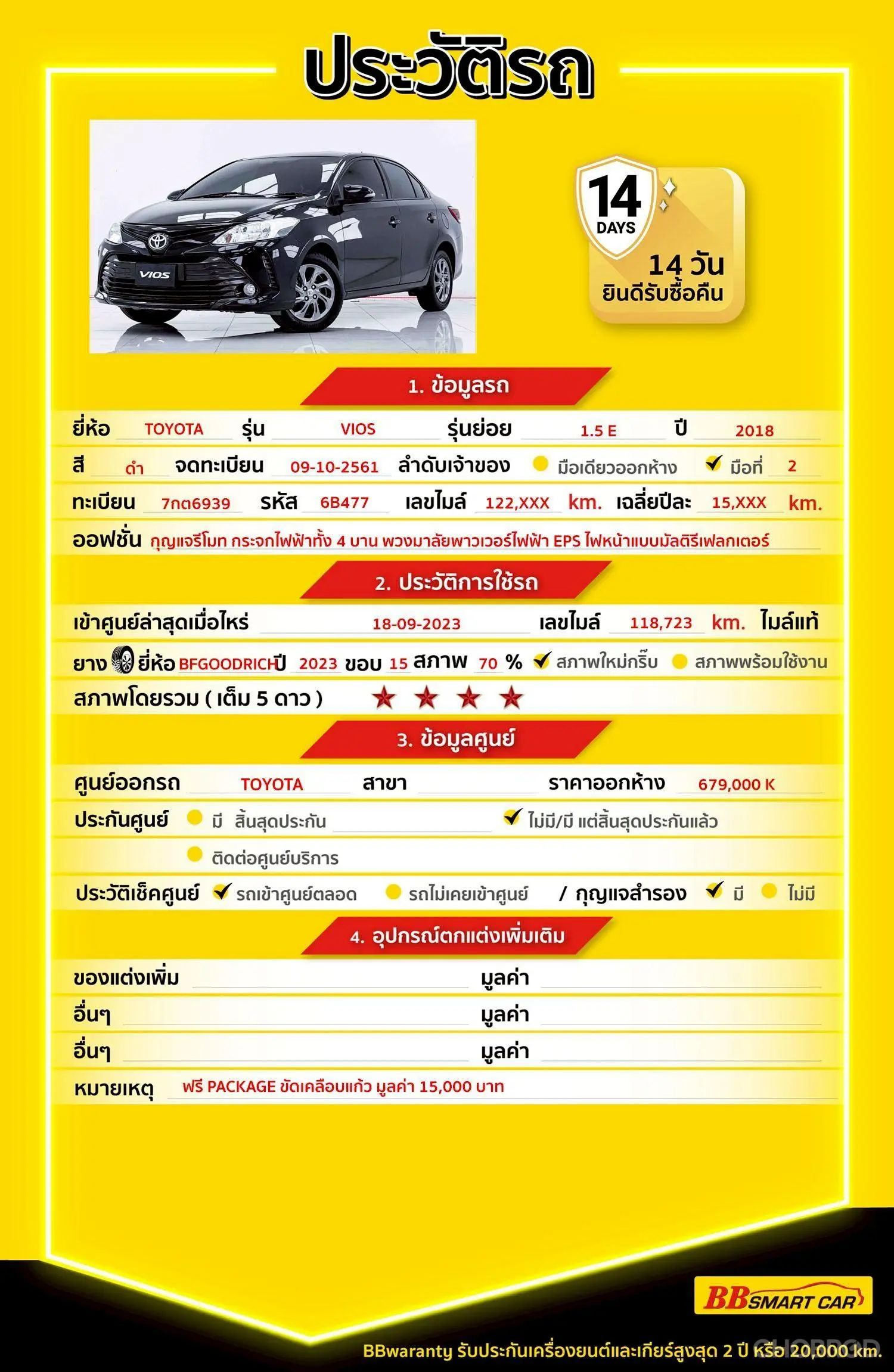 TOYOTA VIOS 1.5 E AT 2018 ออกรถ 0 บาท รหัส 6B477 Line: ID @bbcar06 🔥มีรถให้เลือกมากกว่า 1,800 คัน 🔥รถทุกคันผ่านตรวจสอบ Inspection เรียบแล้วค่ะ ผ่าน 5 ดาวทุกคันค่ะ 🔥ซื้อรถกับ BB พร้อมให้คำปรึกษา แก้ทุกปัญหา ให้ทุกเรื่อง บริการ call center 24 ชม. 🔥BB Care Plus รับประกันหลังการขาย สูงสุด 2 ปี หรือ 20,000 km. 🔥ฟรี!! แพคเก็จ ขัดเคลือบแก้ว มูลค่า 15,000 บาท ทุกคัน 🔥มี 6 สาขา ในกรุงเทพและปริมณฑลใกล้บ้านท่าน สาขา 6 ศูนย์รวมรถยนต์ไอคาร์สยาม กาญจนาภิเษก รหัสรถ 6B477 ราคา 309,000 บาท ผ่อนเพียง 5,340 บาท Brand. : TOYOTA Year. : 2018 Model. : VIOS Grade. : 1.5 E Engine. : 1,500 CC Type. : เบนซิน Gearbox : AT Color. : ดำ Mileage. : 122,XXX KM. (ซื้อสด ราคานี้ยังไม่รวมค่าดำเนินการ 10,000 บ.) 🚩 Price. 309,000 บาท ยอดจัด : 319,000 บาท เงินดาวน์ : 0 บาท ประกันภัย : ฟรีประกันภัย 1 ปี ค่าดำเนินการ : 10,000 บาท รวมออกรถ : 0 บาท ผ่อน 36 งวด = 10,275 บาท ผ่อน 48 งวด = 7,905 บาท ผ่อน 60 งวด = 6,568 บาท ผ่อน 72 งวด = 5,875 บาท ผ่อน 84 งวด = 5,340 บาท เงื่อนไขเป็นไปตามที่ไฟแนนซ์กำหนด โปรโมชั่นพิเศษ สำหรับลูกค้าเครดิตดีลือกรับเรทดอกเบี้ยพิเศษ 📍36 งวด = 1.29 % 📍48 งวด = 1.99 % 📍60 งวด = 2.39 % 📍72 งวด = 3.59 % 🔥 เงื่อนไข โปรโมชั่น ดอกเบี้ยเริ่มต้น 1.29% ตลอดอายุสัญญา - ยอดจัดไฟแนนซ์ 300,000-600,000 บาท - ผ่อนสูงสุด 72 เดือน - เป็นลูกค้าประวัติดี พนักงานประจำเงินเดือน 20,000 ขึ้นไป - ค่าดำเนินการแคมเปญ 20,000 บาท (รวมในยอดจัดได้) 🎗Car Hightlight รถสวยๆ วันนี้ขอแนะนำ TOYOTA VIOS 1.5 E AT 2018 จุดเด่นออฟชั่น 12.2.1 :1. เครื่องยนต์และการขับขี่ที่สมดุล — อัตราเร่งและความประหยัด • ใช้เครื่องยนต์ 1.5 ลิตร (รหัส 2NR-FBE/2NR-FE) Dual VVT-i ให้กำลังประมาณ 107–108 แรงม้า และแรงบิดประมาณ 140 Nm ทำงานร่วมกับเกียร์ CVT พร้อมโหมด M-mode / 6-speed Automatic ให้การขับขี่ราบรื่น เหมาะทั้งในเมืองและเดินทางไกล. 🎗ภายใน • กระจกมองข้างปรับไฟฟ้า กุญแจรีโมท-สัญญานกันขโมย วิทยุ - CD เบรค ABS เบาะหนัง แอร์ 🎗ภายนอก • ไฟตัดหมอก กระจกมองข้างพับไฟฟ้า 🎗ความคุ้มค่า สำหรับคันนี้หากเปรียบเทียบราคากับคุณภาพ คันนี้ถือว่าคุ้มค่ามากค่ะ ผ่อนสบายๆก็มีรถขับได้ รถดีมีคุณภาพแบบนี้รีบตัดสินใจซื้อได้เลราคานี้มาไวไปไวนะคะ